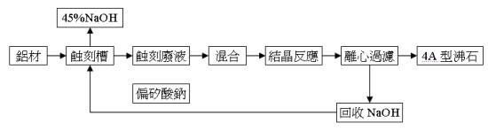 鋁材經陽極處理會產生大量的含鋁蝕刻廢液(spent etching solution),傳統的處理方式以中和法為主,其缺點為產生大量的氫氧化鋁膠態污泥,由於顆粒微細且含水率高,造成處置困難,且氫氧化鈉無法回收再使用,造成資源浪費。本技術利用沸石合成的方式將蝕刻廢液製成4A型沸石,並回收NaOH達到廢料減量及零排放的目標。